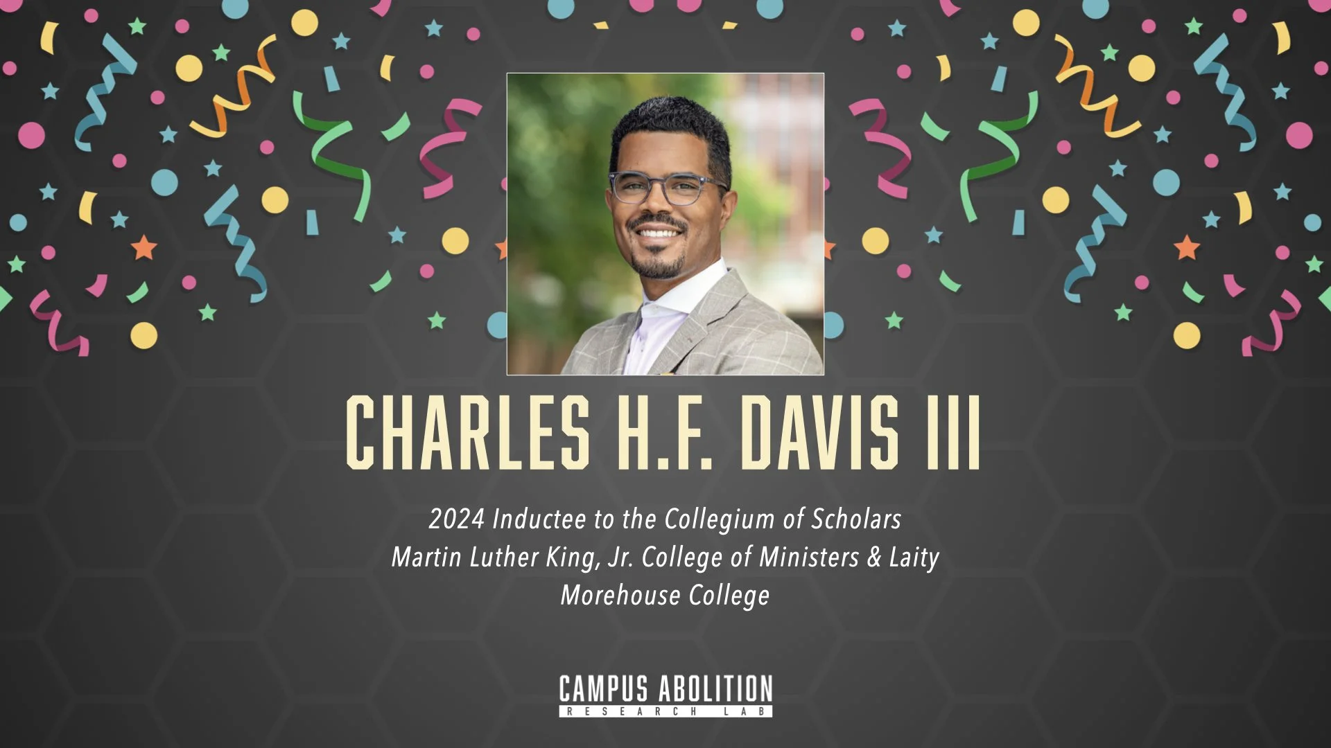 Charles H.F. Davis III, CSPHE faculty member and director of the Campus Abolition Research Lab, has been selected for induction into the 38th Martin Luther King, Jr. College of Ministers and Laity’s Collegium of Scholars at Morehouse College. The College of Ministers and Laity honors individuals who have shown commitment to the adaptive faithful servant-scholar moral cosmopolitan leadership tradition and selfless service to humanity, in tribute to Dr. King.